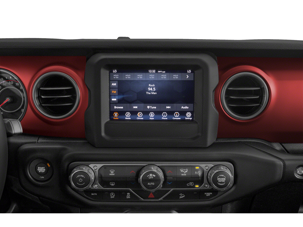 This car is well equipped with the following features: Quick Order Package 23R, 4-Wheel Disc Brakes, 4.10 Rear Axle Ratio, 8 Speakers, ABS brakes, Air Conditioning, Alloy wheels, AM/FM radio: SiriusXM, Apple CarPlay/Android Auto, Automatic temperature control, Aux Battery, Black 3-Piece Hard Top, Brake assist, Compass, Delay-off headlights, Driver door bin, Driver vanity mirror, Dual front impact airbags, Dual front side impact airbags, Electronic Stability Control, Freedom Panel Storage Bag, Front anti-roll bar, Front Bucket Seats, Front Center Armrest w/Storage, Front dual zone A/C, Front fog lights, Front License Plate Bracket, Front reading lights, Fully automatic headlights, Garage door transmitter, Heated door mirrors, Illuminated entry, Integrated roll-over protection, Leather steering wheel, Low tire pressure warning, MOPAR Hardtop Headliner, No Soft Top, Non-Lock Fuel Cap w/o Discriminator, Occupant sensing airbag, Outside temperature display, Panic alarm, ParkView Rear Back-Up Camera, Passenger door bin, Passenger vanity mirror, Performance Suspension, Power door mirrors, Power steering, Power windows, Premium Cloth Low-Back Bucket Seats, Radio data system, Radio: Uconnect 4 w/7 Display, Rear anti-roll bar, Rear reading lights, Rear Window Defroster, Rear Window Wiper/Washer, Remote keyless entry, Remote Proximity Keyless Entry, Security system, Speed control, Split folding rear seat, Steering wheel mounted audio controls, Stop-Start Dual Battery System, Tachometer, Telescoping steering wheel, Tilt steering wheel, Traction control, Trip computer, Variably intermittent wipers, Voltmeter, and Wheels: 17 x 7.5 Machined w/Black Pockets.
