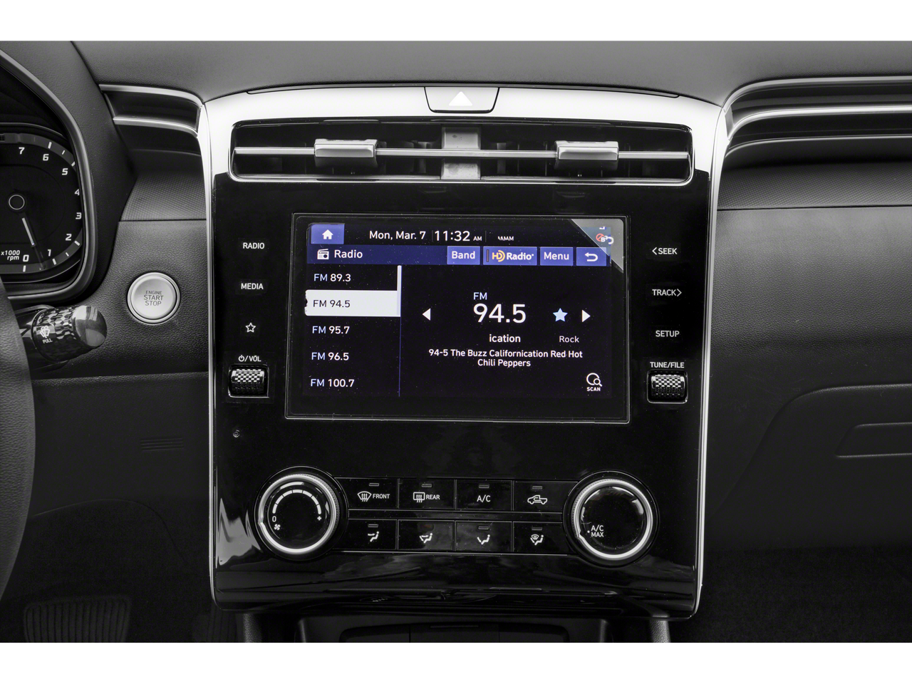 This car is well equipped with the following features: Option Group 01, 18 x 7.5J Alloy Wheels, 3.648 Axle Ratio, 4-Wheel Disc Brakes, 6 Speakers, ABS brakes, Air Conditioning, Alloy wheels, AM/FM radio: SiriusXM, Apple CarPlay & Android Auto, Auto High-beam Headlights, Auto-leveling suspension, Bed Cargo Net, Brake assist, Bumpers: body-color, Carpeted Floor Mats, Delay-off headlights, Driver door bin, Driver vanity mirror, Dual front impact airbags, Dual front side impact airbags, Electronic Stability Control, Emergency communication system: Blue Link Connected Car Service (3-year complimentary subscription), Envelop Cargo Net, Exterior Parking Camera Rear, First Aid Kit, Four wheel independent suspension, Front anti-roll bar, Front Bucket Seats, Front Center Armrest, Front reading lights, Fully automatic headlights, Heated door mirrors, Heated Front Bucket Seats, Heated front seats, Illuminated entry, Low tire pressure warning, Mudguards, Occupant sensing airbag, Outside temperature display, Overhead airbag, Overhead console, Panic alarm, Passenger door bin, Passenger vanity mirror, Power door mirrors, Power driver seat, Power steering, Power windows, Radio data system, Radio: AM/FM Audio System, Rear anti-roll bar, Rear step bumper, Rear window defroster, Remote keyless entry, Security system, Speed control, Speed-sensing steering, Split folding rear seat, Spoiler, Stain & Odor Resistant Cloth Seat Trim, Steering wheel mounted audio controls, Tachometer, Telescoping steering wheel, Tilt steering wheel, Traction control, Trip computer, Turn signal indicator mirrors, Variably intermittent wipers, and Wheel Locks.